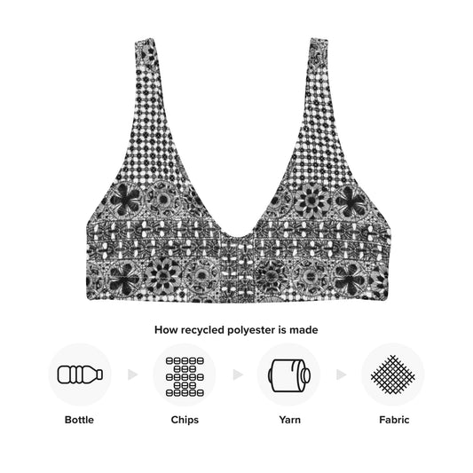 Black Ñanduti lace padded bikini top paraguayan lace