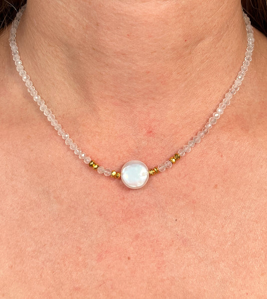 Beaded rock crystal quartz Necklace | Rock crystal quartz Choker | Rock Crystal Quartz and gold filled jewelry | Beaded layering
