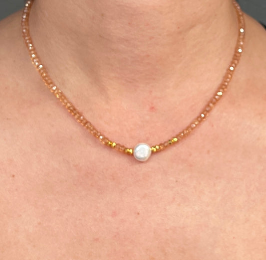 Beaded Zircon Necklace | AAA Zircon Choker | Zircon and pearl jewelry | coin pearl pendant | boho jewelry | Beaded layering