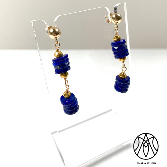 Lapis lazuli faceted heishi earrings