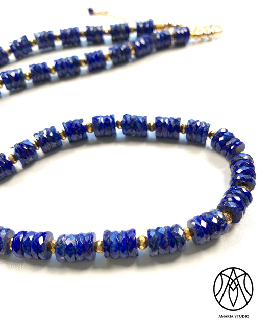 Lapis lazuli faceted heishi necklace