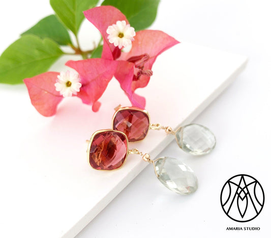 Pink tourmaline and green amethyst earrings
