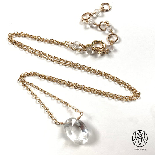 Rock crystal, white topaz necklace
